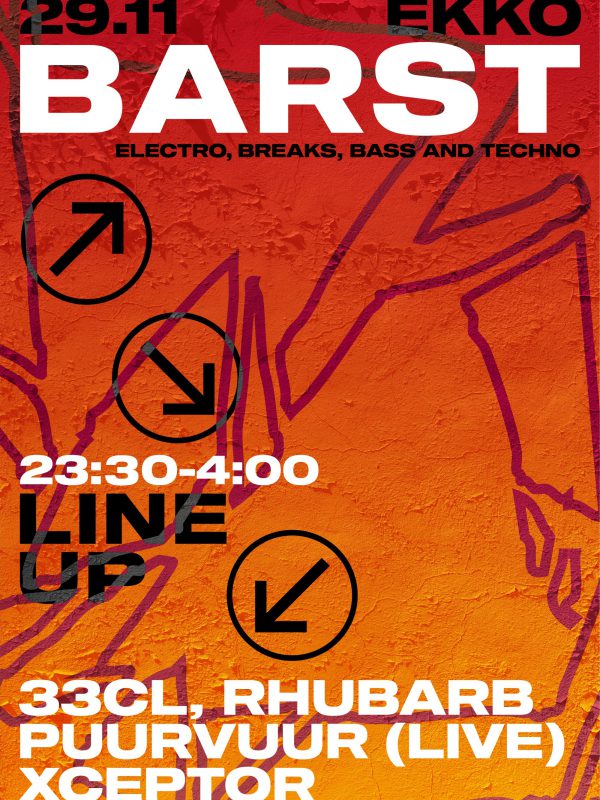 BARST is a party for lovers of alternative electronics, a night for night owls and gearheads. For this second edition, we’re diving deep into breakbeats and raw techno. Expect an evening shaped by local artists who know exactly how to get a crowd moving. Starting at 01:00, puurvuur makes his live set debut with analog drum machines and wild synths that perfectly capture what BARST is all about.