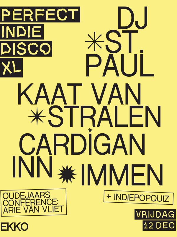Perfect Indie Disco XL is back with its traditional end-of-year edition: a glorious indie celebration at EKKO to close off the year. Featuring Arie van Vliet’s musical New Year’s Eve show, an indie pop quiz, and three promising live acts. Host St. Paul will be spinning records and eating oliebollen from the start until deep into the night.
