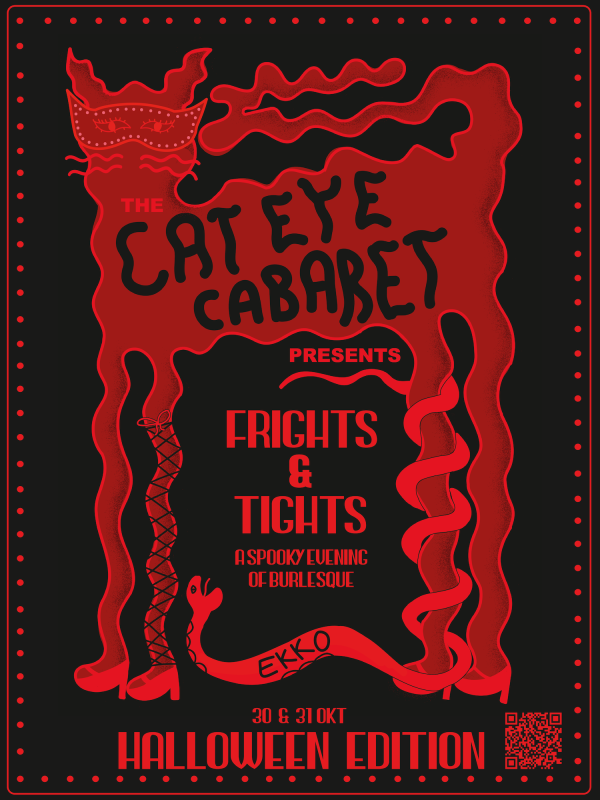The Cat Eye Cabaret returns with a brand-new Halloween burlesque show! After a string of successful editions at EKKO, the troupe is ready to show their darker side once again. The Cat Eye Cabaret presents: Frights & Tights — a spooky burlesque night full of horror, humor, and a touch of glitter. Do you dare?