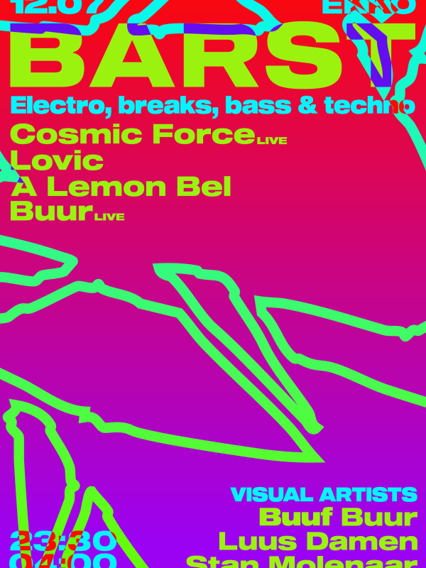 BARST is een feest voor de alternatieve elektronica liefhebber. Deze avond voor nachtbrakers met liefde voor de dansvloer opent met opzwepende underground DJ’s. Vanaf 12 uur is het live: met analoge drumcomputers ga je door de rauwe kant van de Utrechtse elektronica scene, waar nieuw talent én veteranen je doorheen leiden.