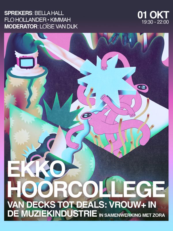 De line-ups veranderen langzaam: steeds meer vrouwen en non-binaire dj’s staan op het podium. Tegelijk is er nog genoeg te winnen. Hoe ziet een muziekindustrie eruit waarin iedereen gelijke kansen krijgt, zich veilig voelt en de ruimte heeft om te groeien, voor én achter de schermen?Tijdens dit hoorcollege onderzoeken we waar het nu schuurt én waar kansen liggen. Waarom blijft het belangrijk om over representatie en veiligheid te praten, ook als de cijfers voorzichtig stijgen? Welke drempels ervaren vrouwen+ en non-binaire artiesten in de scene? En welke initiatieven en ideeën brengen ons verder?Moderator Loïse van Dijk (ZORA) gaat in gesprek met Bella Hall (dj, onderdeel van AMPFEMININE), Kimmah (dj, actief bij N8W8 Rotterdam) en Flo Hollander (Nachtcoördinator Utrecht). Met hun uiteenlopende achtergronden en perspectieven geven zij zicht op hoe de nachtcultuur inclusiever en veiliger kan worden ingericht.
