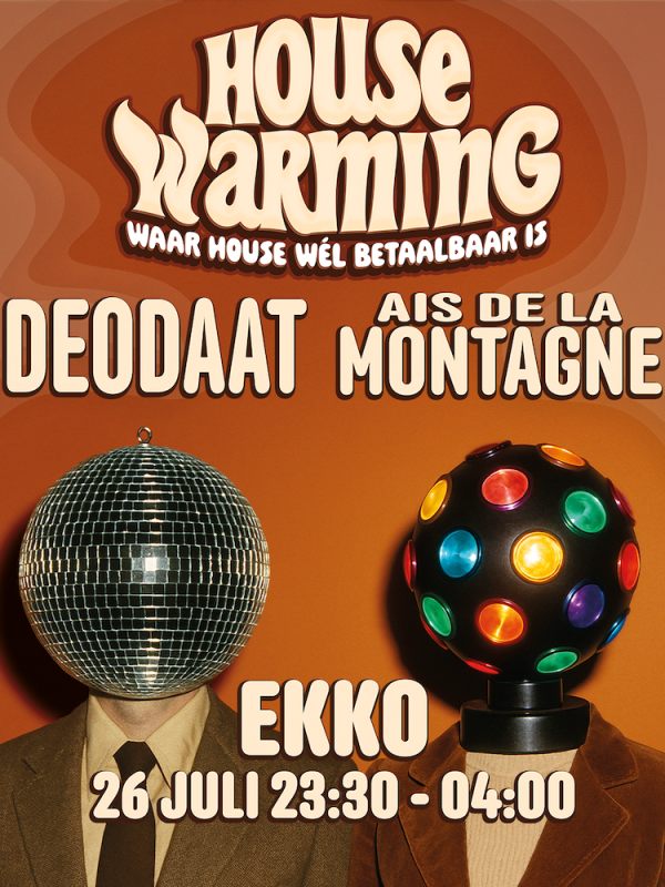Stap binnen bij Housewarming, de nacht waar de dansvloer voelt als een warme woonkamer vol herinneringen. Waar house, disco en funk de soundtrack is van een gedeeld verleden vol popcultuur, filmfragmenten, iconische beelden en nostalgie. Van en voor het Utrechtse nachtleven: een viering van alles wat ons bindt in deze stad, in deze tijd. We zijn super blij en vereerd dat AIS De La Montagne en Deodaat ons podium willen laten schijnen op deze eerste editie.