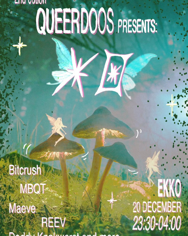 Het buitenaards leven is op aarde geland! Wat blijkt? We zijn het zelf… Toen de onderdelen van Queerdoos zich dit realiseerden, besloten ze dat het tijd was om het buitenaardse een plek te geven in het Utrechts nachtleven. XO (ja, zoals exo – ‘buiten’ in het Latijn) is de nacht waarin je het onverwachte kunt verwachten, we het ontregelende regelen, het ontwrichtende ons tijdsgewricht is, en we het ondenkbare léven! Kom met ons verdwalen in een bizarre mix van techno, (hard)trance, hyperpop, DnB, hardcore, UK garage en reggaeton. Kom je overgeven aan het werk van kunstenaars en theatermakers die op zoek zijn naar het ‘queer’ in queerness.